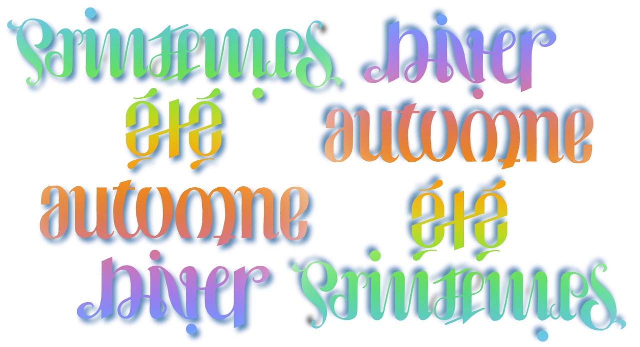 Et encore, ambigrammes et compagnie.. Camille Pauline Chantal Agathe Irma Irma Julie Christine Sophie Hélène Ingrid Aïda Amandine Laurence illumination quatorze Victor Zola rock'n roll fox trot quadrille rythme'n blues tango valse terre et ciel pile ou face Paris meilleurs voeux prénoms saisons onde
